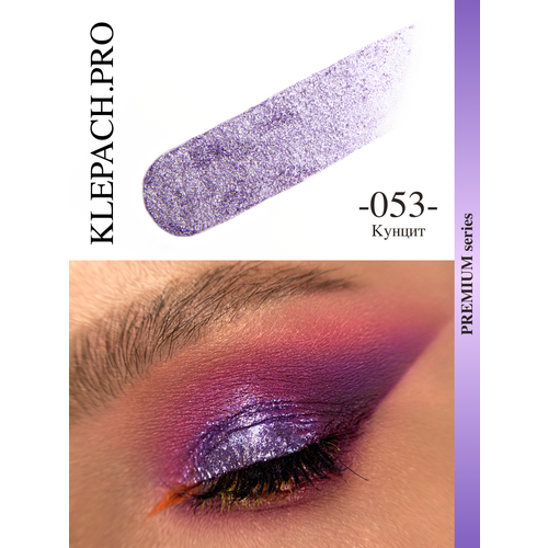 Лиловый искрящийся пигмент. Создайте романтичный образ, придайте притягательный блеск глазам с помощью этого пигмента. На темной базе — холодный металлический блеск. На праймере Klepach. Pro — яркий сиреневый искрящийся оттенок.
