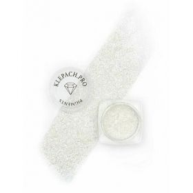 Универсальный пигмент белого цвета. На черной гелевой подводке - плотный серебряный оттенок. На светлой базе или праймере Klepach.Pro яркий, белый оттенок, искрящийся на свету.