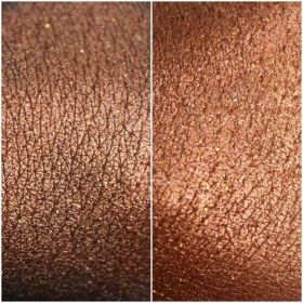 - На светлой базе - оранжево-коричневый с золотистым блеском. На темной базе - приятный коричневый оттенок. С помощью данного пигмента можно создавать различные макияжи, как дневные, так и вечерние.