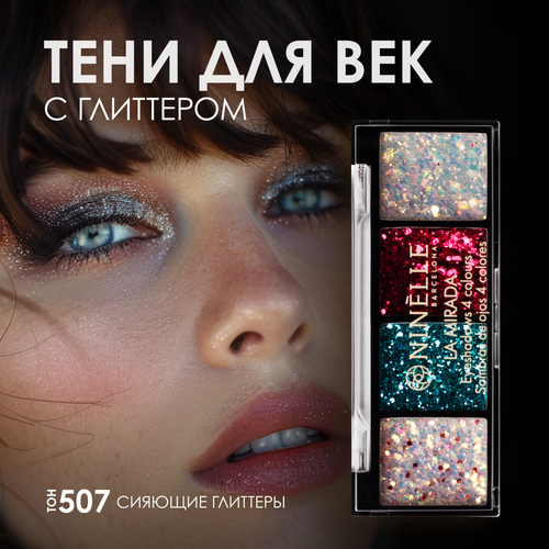 НАЙТИ ВЫГОДНЕЕ - NINELLE Тени для век 4 оттенка LA MIRADA №508, сияющий глиттер