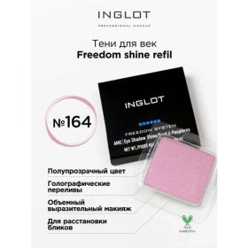 Тени для век с шиммером Inglot. Freedom shine refil - это линейка теней для век АМС Freedom System - с интересным сочетание цвета и мерцающих светоотражающих частиц, обеспечивающее оригинальный переливающийся финиш. Бархатистая формула и тонкодисперсная текстура теней инглот дарят легкое нанесение и гарантируют, что тени не размазываются и не скапливаются в складках кожи и ваш макияж макияж будет держаться в течении всего дня.