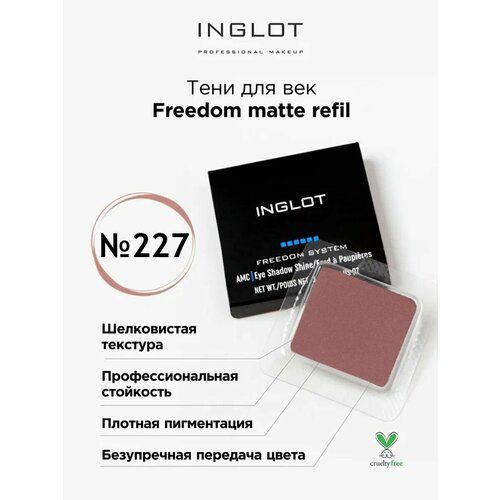 Тени для век матовые freedom matte nf refil 227 уникальной системы Freedom Inglot в новой улучшеной формуле NF, обогащенной разглаживающим и увлажняющим маслом Цубаки.