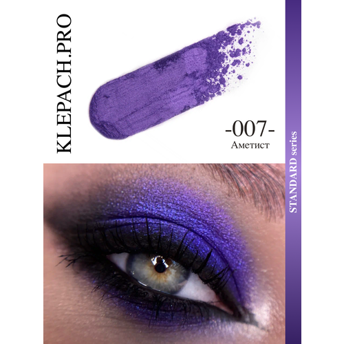 Пигмент невероятно притягательного и красивого фиолетового цвета. Отлично подходит для необычных макияжей или для ярких акцентов в вечернем образе. Для точного нанесения используйте кисть KLEPACH. PRO Е19. На темной базе тинт Klepach.Pro 07 оттенок становится более плотным и ровным. На праймере Klepach. Pro оттенок выглядит чуть светлее, с металлическим блеском.
