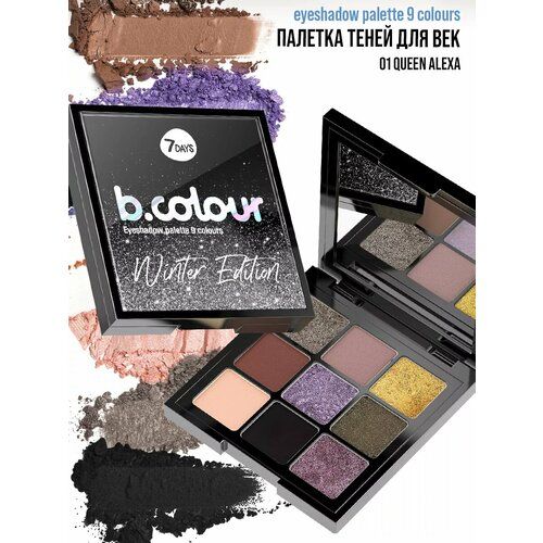 НАЙТИ ВЫГОДНЕЕ - Тени для век палетка 7DAYS B.COLOUR WE матовые, блестящие, стойкие, 9 оттенков 01 Queen Alexa.