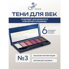 НАЙТИ ВЫГОДНЕЕ - Тени для век FFLEUR Love Forever палетка 6 цветов спонж в комплекте, вариант 03