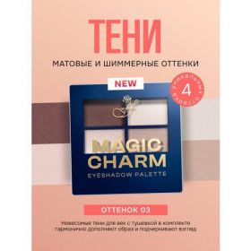 Упаковка удобна для использования и позволяет легко брать продукт с собой в дорогу. Не упустите возможность добавить эту замечательную косметику в свою коллекцию — тени "MAGIC CHARM" помогут вам создать уникальный стиль и подчеркнуть вашу индивидуальность. С этими тенями ваш взгляд будет всегда привлекательным и завораживающим.