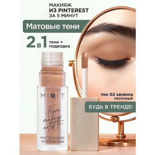 НАЙТИ ВЫГОДНЕЕ - MIXIT Тени для век жидкие матовые, тон 02 песочный. Профессиональная декоративная косметика для макияжа глаз MAKE UP