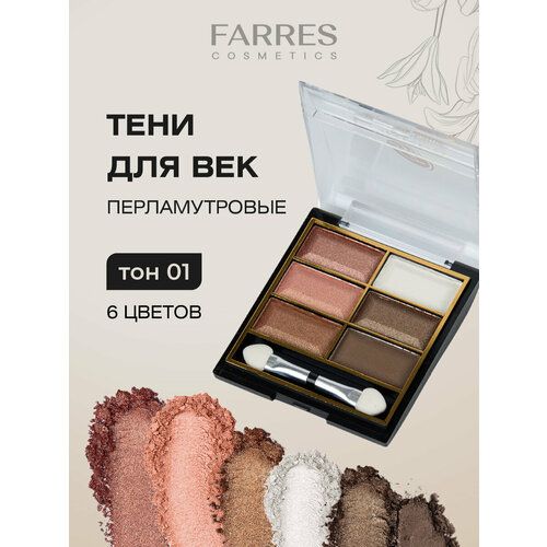 Farres Тени для глаз 6 цветов перламутровые, розовые, бежевые тон 01
