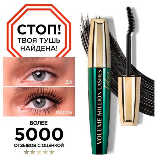 Тушь для ресниц "Объем миллиона ресниц Feline Взгляд кошки", для объема и разделения, экстрачерная.