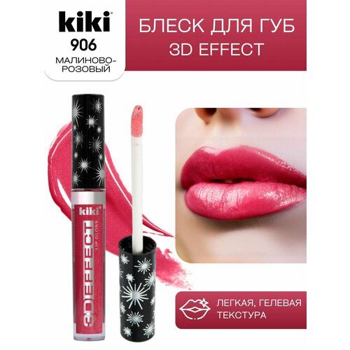 НАЙТИ ВЫГОДНЕЕ - Блеск для увеличения губ KIKI 3D EFFECT 906, жидкая губная помада оттенок малиново-розовый, золотые с блестками