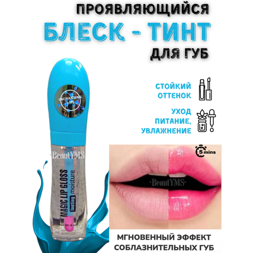 Блеск для губ прозрачный глянцевый водостойкий с маслами, питательными компонентами и с проявляющимся насыщенным розовым оттенком Magic Lip Gloss Lasting Moisture.