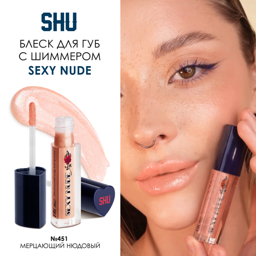 НАЙТИ ВЫГОДНЕЕ - SHU Блеск для губ мерцающий объемный SEXY NUDE №451 мерцающий нюдовый