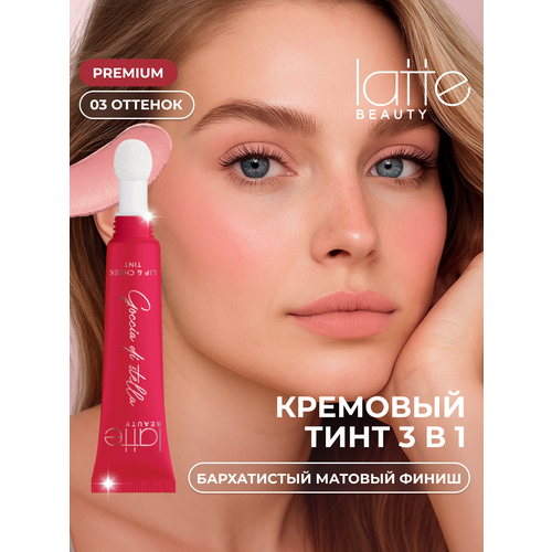 НАЙТИ ВЫГОДНЕЕ - Тинт для губ, век и щек Latte Beauty Goccia Di Stella, универсальные румяна 3в1, розовая пудра, кремовый, оттенок 03
