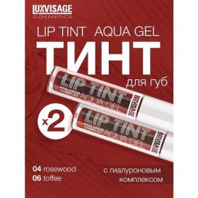 НАЙТИ ВЫГОДНЕЕ - Тинт для губ с гиалуроновым комплексом LUXVISAGE LIP TINT AQUA GEL hyaluron complex набор 2 шт. тон 04 и 06