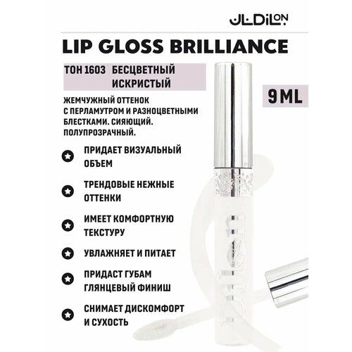 Dilon Блеск для губ Brilliance тон 1603 жемчужный оттенок с перламутром и разноцветными блестками, сияющий и полупрозрачный с витамином Е и маслом Авокадо. Инновационная формула блеска Lip Gloss Brilliance создает эффект влажных губ Витамин Е замедляет и предотвращает окислительные процессы в коже, способствует её заживлению, защищает кожу от вредного УФ-излучения. Удобная кисточка с шелковистым аппликатором позволяет равномерно наносить блеск, сохраняя при этом четкий контур нанесения. Богатая палитра оттенков и эффектов дает полную свободу выражения Ланолин, Витамин Е, масло Авокадо. Блеск для губ прозрачный, глянцевый, витамин Е, UF-фильтр, масло Авокадо