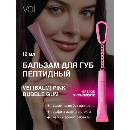 НАЙТИ ВЫГОДНЕЕ - Vei Бальзам блеск для губ с брелоком розовый увлажняющий с пептидами с ароматом бабл-гам и эффектом жидкого стекла 12 мл