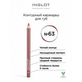 Контурный карандаш для губ INGLOT 63 soft precision lipliner в классическом деревянном корпусе.