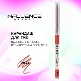 НАЙТИ ВЫГОДНЕЕ - Карандаш для губ Influence Beauty Lipfluence автоматический, гелевый, стойкий, тон 02: нюд светло-розовый, 0,28г
