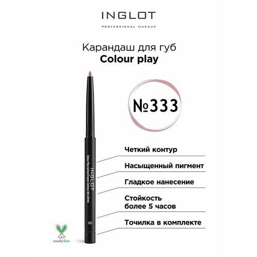 Контурный карандаш для губ Colour play 333 от INGLOT является незаменимым продуктом в любой косметичке. Текстура карандаша для макияжа инглот дарит губам комфорт и мягкость.