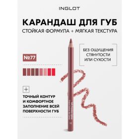 Контурный карандаш для губ INGLOT 77 soft precision lipliner в классическом деревянном корпусе.