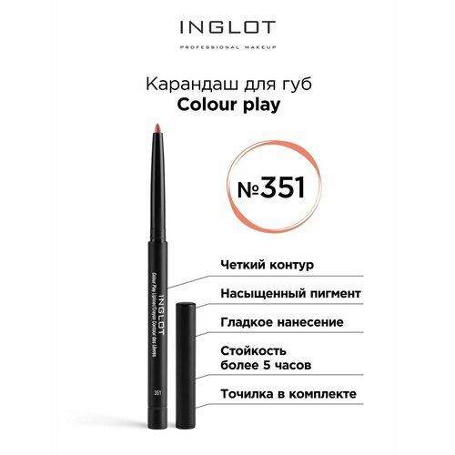Контурный карандаш для губ Colour play 351 от INGLOT является незаменимым продуктом в любой косметичке. Текстура карандаша для макияжа инглот дарит губам комфорт и мягкость.