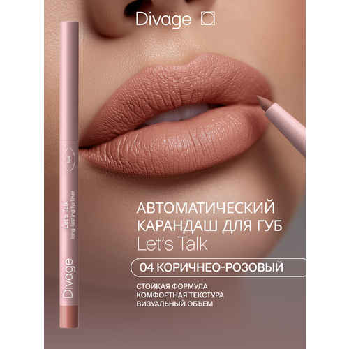 Автоматический карандаш для губ Divage Let's Talk Long-lasting Lip Liner Тон 04 - это стойкий и удобный в использовании инструмент для макияжа губ.