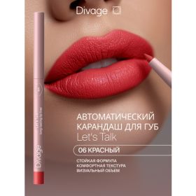 НАЙТИ ВЫГОДНЕЕ - Divage Автоматический карандаш для губ Let’s Talk long-lasting lip liner Тон 06 красный