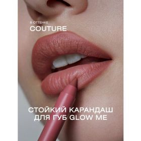 Стойкий карандаш для губ от российского бренда GLOW ME в оттенке COUTURE обладает матовой, гелевой текстурой. Легко наносится и не стягивает губы. Способ применения: нанесите карандаш по контуру губ, дополнив его маслом, помадой или блеском. При необходимости нанесите карандаш на всю поверхность губ. Меры предосторожности: только для наружного применения. Не использовать на открытых ранах или раздраженной коже. Не использовать в случае индивидуальной непереносимости ингредиентов. Хранить в недоступном для детей месте.