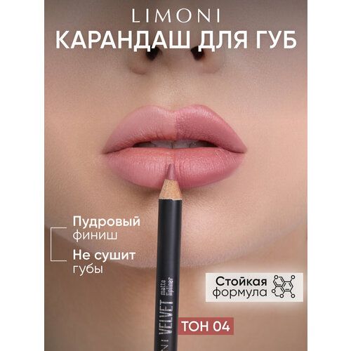 НАЙТИ ВЫГОДНЕЕ - LIMONI Карандаш для губ Velvet Matte Lipliner, пудровый, матовый, контурный, нюдовый, тон 04