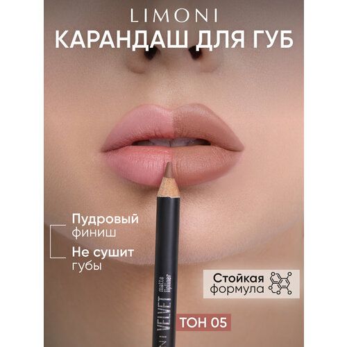 НАЙТИ ВЫГОДНЕЕ - LIMONI Карандаш для губ Velvet Matte Lipliner, пудровый, матовый, контурный, нюдовый, тон 05