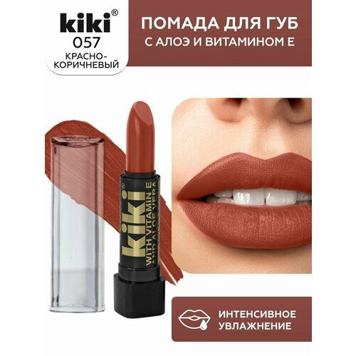 НАЙТИ ВЫГОДНЕЕ - Помада для губ KIKI SABIA оттенок 057 c алоэ и витамином Е, красно-коричневый, с глянцевым блеском