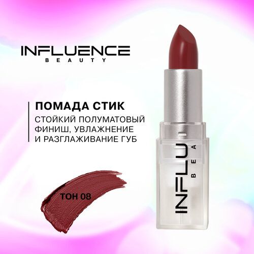НАЙТИ ВЫГОДНЕЕ - Помада стик Influence Beauty Influence сатиновая, полуматовый финиш, тон 08: кораллово-бежевый, 4г