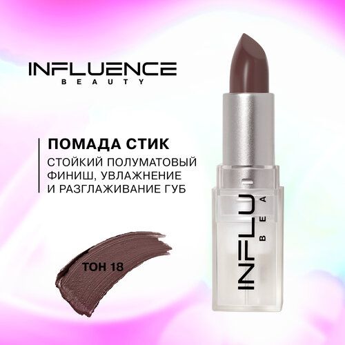 НАЙТИ ВЫГОДНЕЕ - Помада стик Influence Beauty Influence сатиновая, полуматовый финиш, тон 18: коричневый, 4г