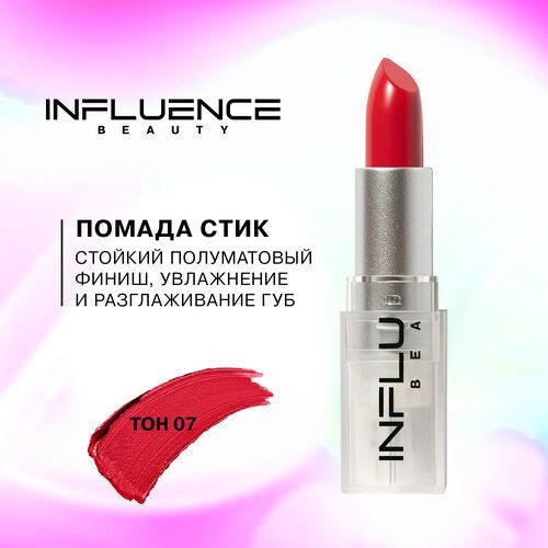 НАЙТИ ВЫГОДНЕЕ - Помада стик Influence Beauty Influence сатиновая, полуматовый финиш, тон 07: красный, 4г