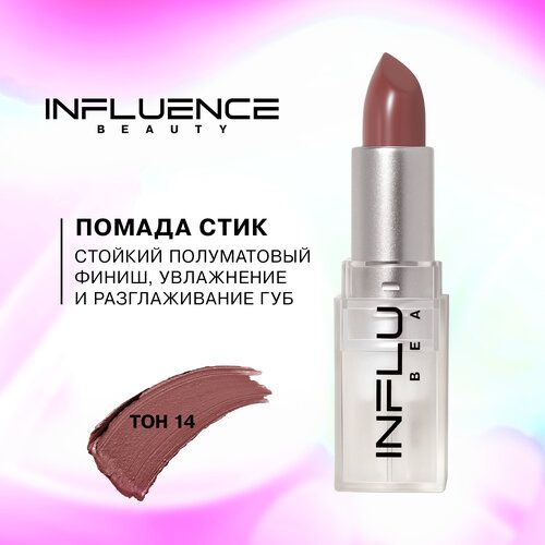 НАЙТИ ВЫГОДНЕЕ - Помада стик Influence Beauty Influence сатиновая, полуматовый финиш, тон 14: нюд теплый темно-персиковый, 4г
