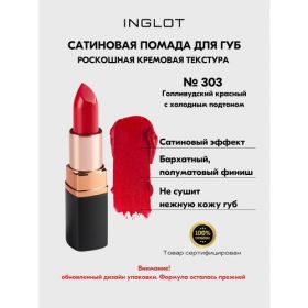 НАЙТИ ВЫГОДНЕЕ - Помада стойкая для губ INGLOT полуматовый финиш, кремовая текстура №303S