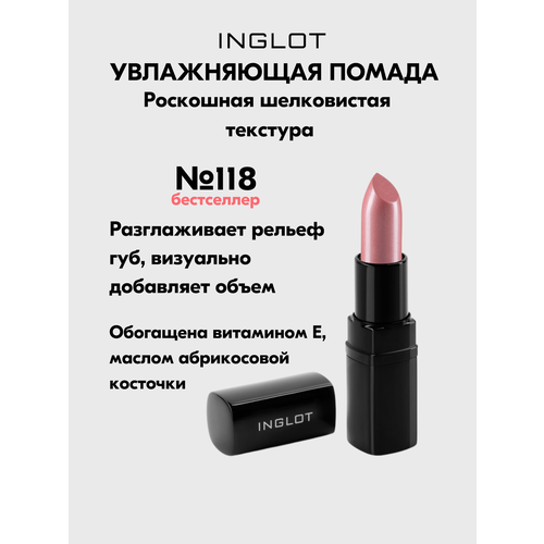 Глянцевая увлажняющая помада INGLOT Lipstick 118, сочетающая в себе глубокий цвет с нежным послевкусием.