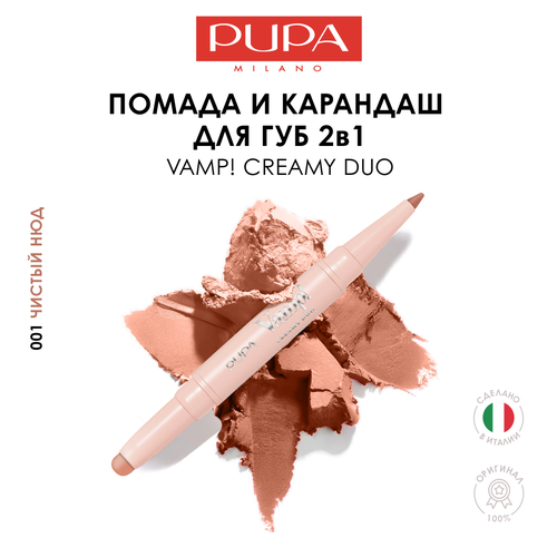 НАЙТИ ВЫГОДНЕЕ - PUPA Помада для губ матовая увлажняющая VAMP CREAMY DUO №001 чистый нюд