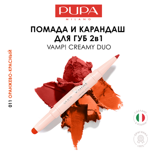 НАЙТИ ВЫГОДНЕЕ - PUPA Помада для губ матовая увлажняющая VAMP CREAMY DUO №011 оранжево-красный