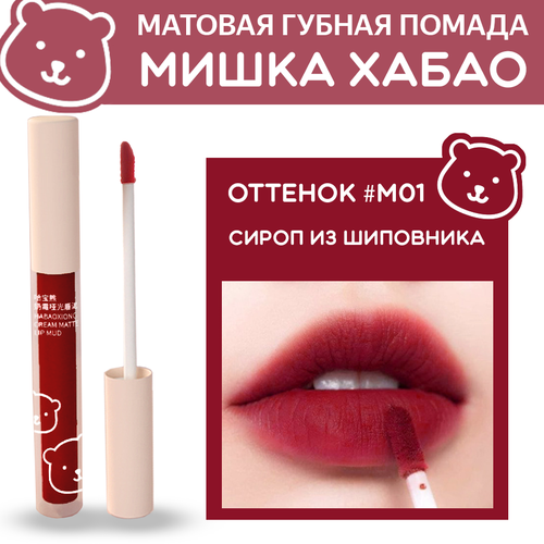 НАЙТИ ВЫГОДНЕЕ - Помада губная жидкая матовая Мишка Хабао -оттенок Сироп из шиповника, бренд Habao Bear
