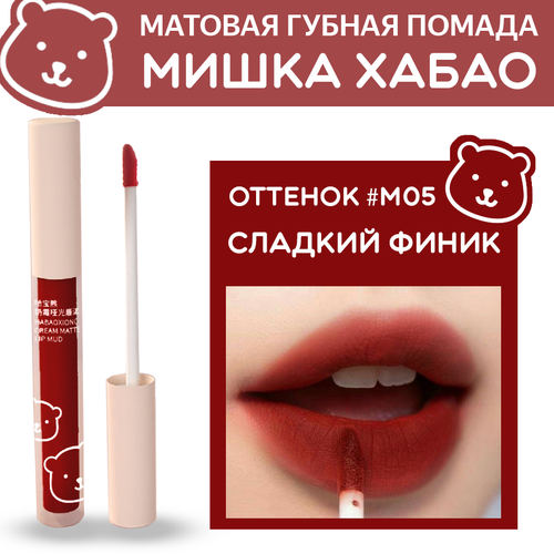 НАЙТИ ВЫГОДНЕЕ - Помада губная жидкая матовая Мишка Хабао -оттенок Сладкий финик, бренд Habao Bear
