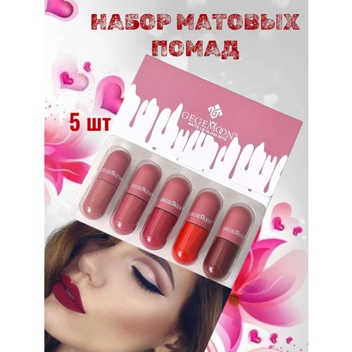НАЙТИ ВЫГОДНЕЕ - Набор жидких матовых губных помад GEGEMOON, 5 штук, подарочная упаковка