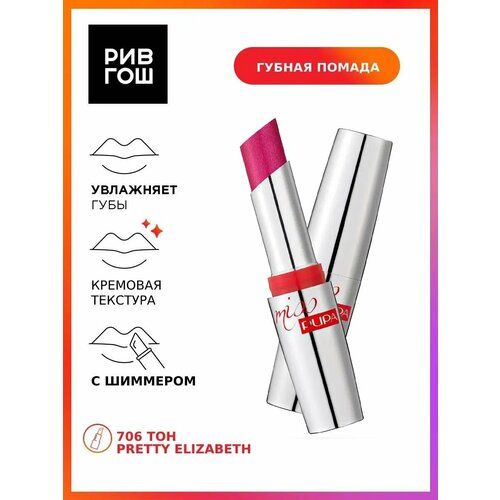 Почувствуй себя звездой Миллионы сияющих частичек и увлажняющая текстура, дарят ощущение абсолютного комфорта. Губная помада Miss Pupa Starlight, 706 - 1 шт. У нас Вы всегда сможете подобрать женскую и мужскую парфюмерию, декоративную косметику, а так же уходовые средства для волос, тела и лица. РИВ ГОШ вдохновляет дарить подарки каждый день.