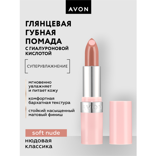 НАЙТИ ВЫГОДНЕЕ - Глянцевая губная помада с гиалуроновой кислотой Avon СуперУвлажнение тон Нюдовая классика