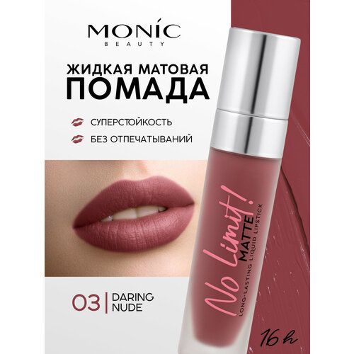 НАЙТИ ВЫГОДНЕЕ - Помада для губ жидкая MONIC BEAUTY No Limit Long-Lasting матовая тон 03 Daring Nude