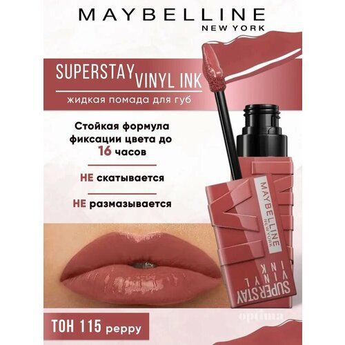 НАЙТИ ВЫГОДНЕЕ - Maybelline New York Помада для губ Super Stay Vinyl Ink, 115 Peppy, жидкая стойкая сияющая, 4.2 мл