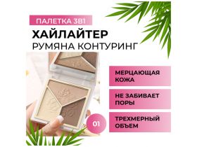 Палетка 3 в 1 для макияжа (хайлайтер, румяна, контуринг), тон 01 101954883036