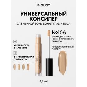 Консилер под глаза ALL Covered Under Eye Concealer 106 от INGLOT-инновационный корректор способный скрыть темные круги, пигментацию и недостатки кожи вокруг глаз. Консилер является многозадачным продуктом, который может быть инструментом для контуринга, так как имеет сильное покрытие. Идеально подходит для точечного нанесения на любую часть лица.