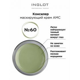 Консилер крем для лица AMC cream concealer 60 INGLOT в оттенке оливковый. Маскирующий крем корректор AMC от Инглот, содержащий витамины А и Е. AMC Консилер разглаживает мелкие морщинки, придавая коже лица идеально гладкий вид, легко нейтрализует яркий пигмент вокруг глазСветоотражающие частицы, содержащиеся в консилере, маскируют пигментные пятна, делая кожу естественно сияющей и отдохнувшей. Крем для лица нейтрализует оттенки фиолетового под глазами, подходит даже для самых ярких синячков.