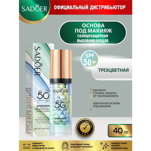 НАЙТИ ВЫГОДНЕЕ - Солнцезащитная трёхцветная выравнивающая основа под макияж SPF50+ PA+++ Sadoer 40 гр.